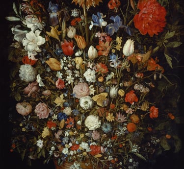 Şu an Avusturya’nın başkenti Viyana’daki Sanat Tarihi Müzesi’nde bulunan, 93x73 cm boyutundaki gölgesiz tabloda Brueghel, bir vazoda 130 farklı çiçeği birlikte resmetmiş. Müzedeki çiçek tablolarını “Sanatta Çiçeklerin Pırıltısı” adlı katalog kitapta anlatan Daniel Uchtmann’a göre ise Brueghel, bu lalenin Mezopotamya’dan geldiğinden habersizdi.